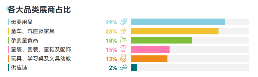 母婴用品,童车、汽座及家具,孕婴童食品、营养品及零食,为本届展会展商数量排名前三的品类。其中,童车、汽座及家具排名由去年的第三升至第二。