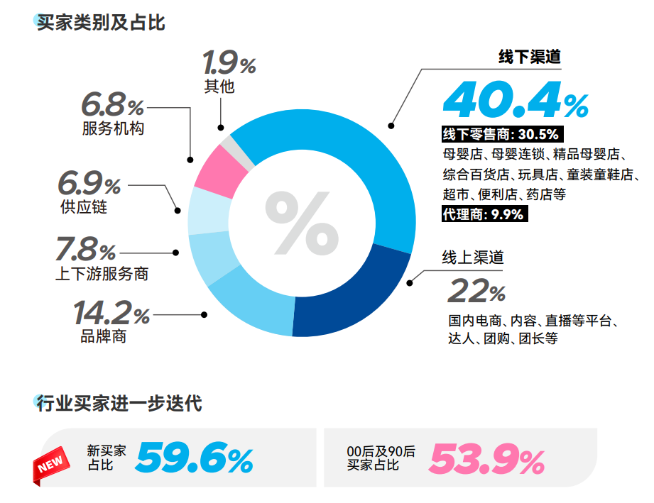 其中母婴行业买家在进一步年轻化,本届展会的新观众比例达59.6%,90后及00后的占比达53.9%。